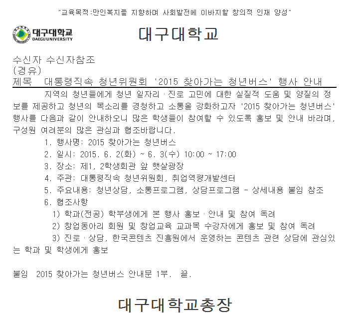 대통령직속 청년위원회 '2015 찾아가는 청년버스' 행사 안내