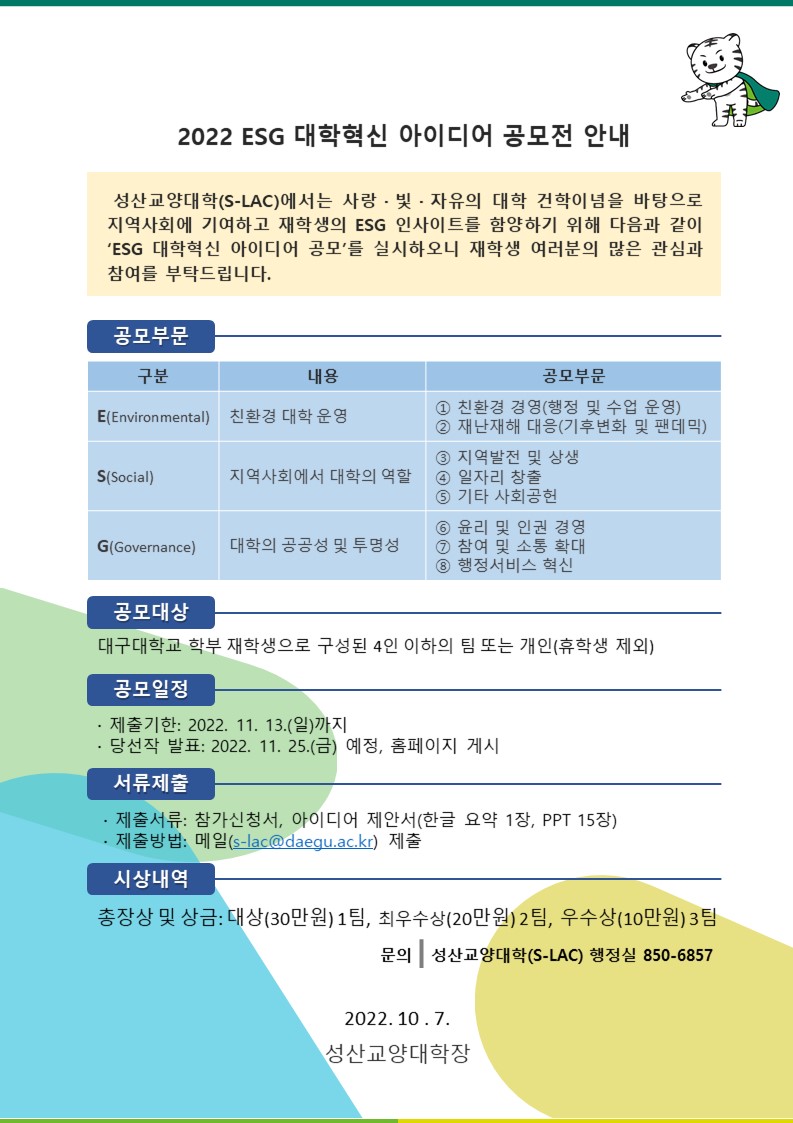 [ 「2022 ESG 대학혁신 아이디어 공모전」 실시 안내 ]